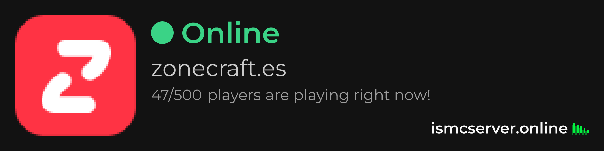 Dark Rounded image: https://ismcserver.online/zonecraft.es/widget?dark&rounded
